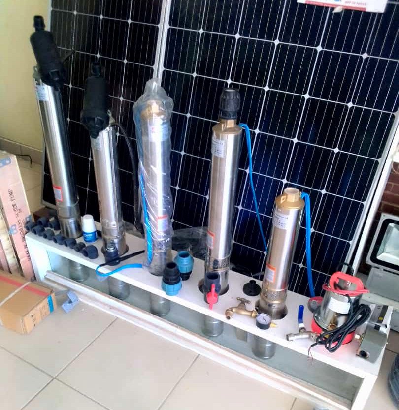 Boreholes makes use of water Submersible pumps. The source of power can either be AC or Solar DC pump. The amount of water that needs to be extracted and the borehole’s depth determine the pump size.